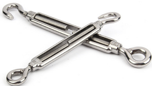 鉤環(huán)式收緊器又被稱為開(kāi)體花籃、花籃螺絲,是常用的貨物捆綁工具,采用不銹鋼材質(zhì)制造而成,防腐蝕防生銹的同時(shí)也能讓操作者看到它本身的螺紋紋路,在使用收緊器緊固貨物過(guò)程中,螺栓也會(huì)處于緊固的狀態(tài),它的軸向拉力不斷增大,螺紋之間相互咬合,進(jìn)一步增大了軸向拉力,在垂直于螺栓的方向,緊固力在與螺紋垂直方向上的分量和摩擦力之和相等后,緊固結(jié)束,貨物捆綁作業(yè)也就圓滿結(jié)束。